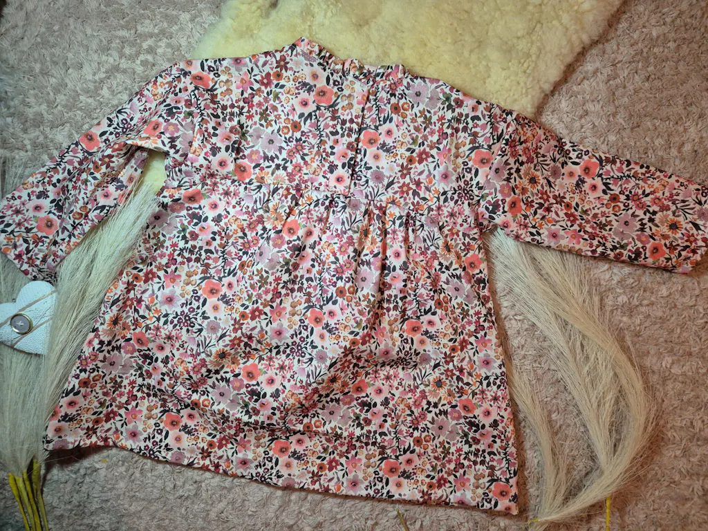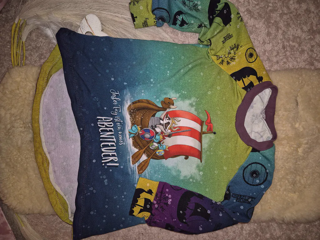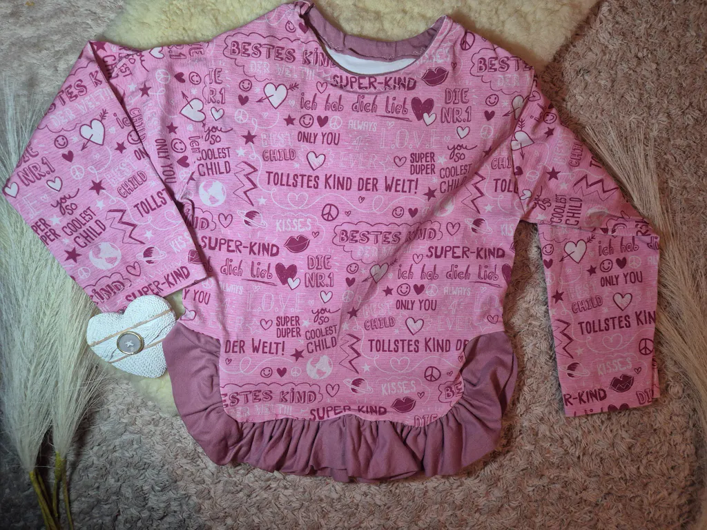 Ein wunderschöner Schnitt, ich liebe dieses Shirt an meiner Kleinen. Gerade die Rüschen und der gebogene Abschluss machen dieses Oberteil einzigartig
