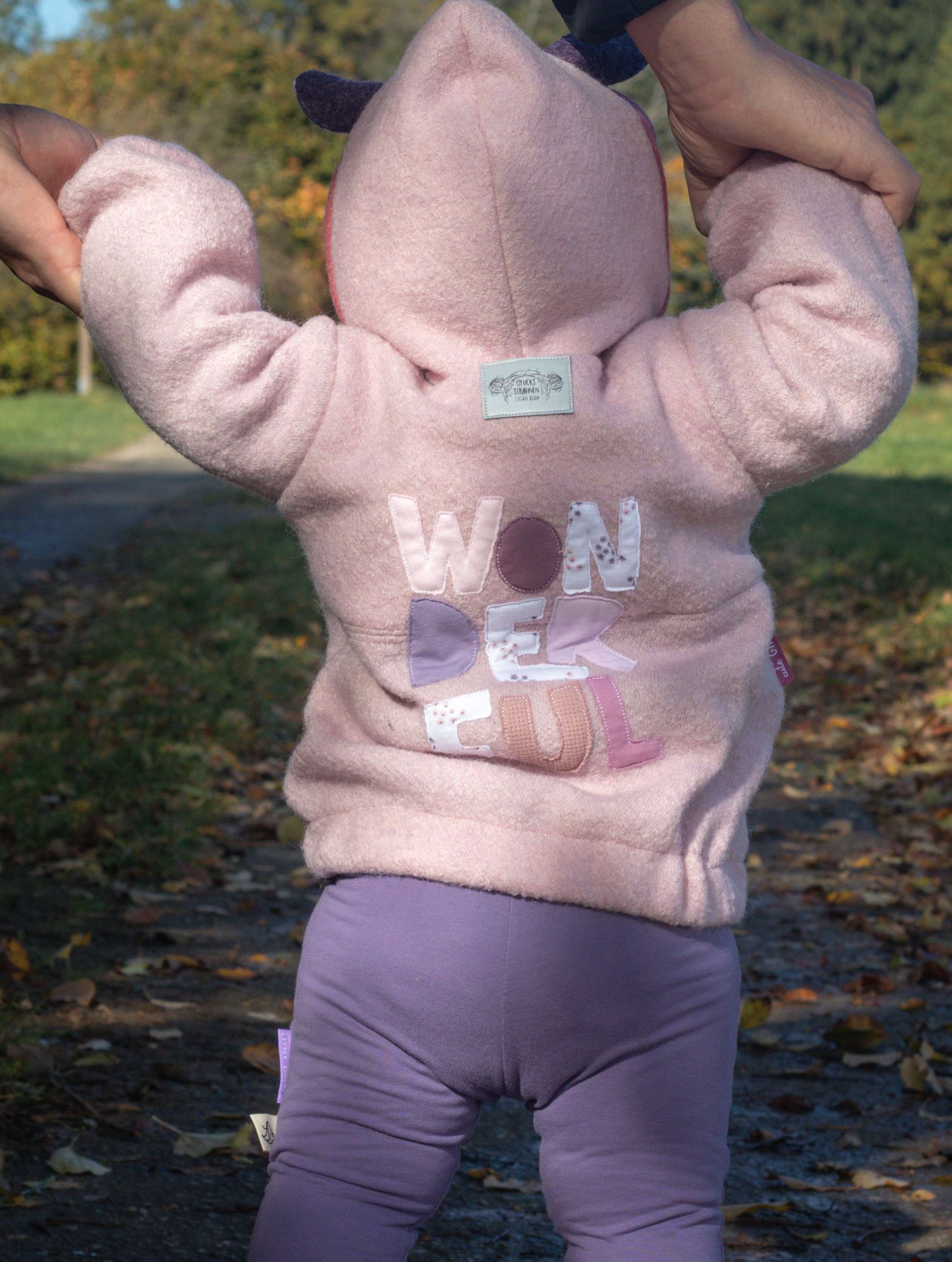 Gefüttert wird der Windwalker ausschließlich im Brust- und Kapuzenbereich. Dadurch bleibt er insgesamt leicht und trägt sich eher wie ein Pullover als wie eine klassische Jacke. Für das Futter eignen sich weiche Stoffe wie Jersey, French Terry oder leichter Sweat.